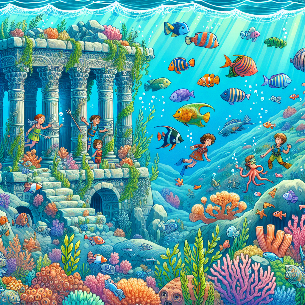 Insieme, nuotarono attraverso foreste di alghe ondeggianti e superarono banchi di pesci argentati che brillavano come stelle nel cielo. Dopo una lunga nuotata, finalmente giunsero alla prima città sommersa, chiamata Coralville.