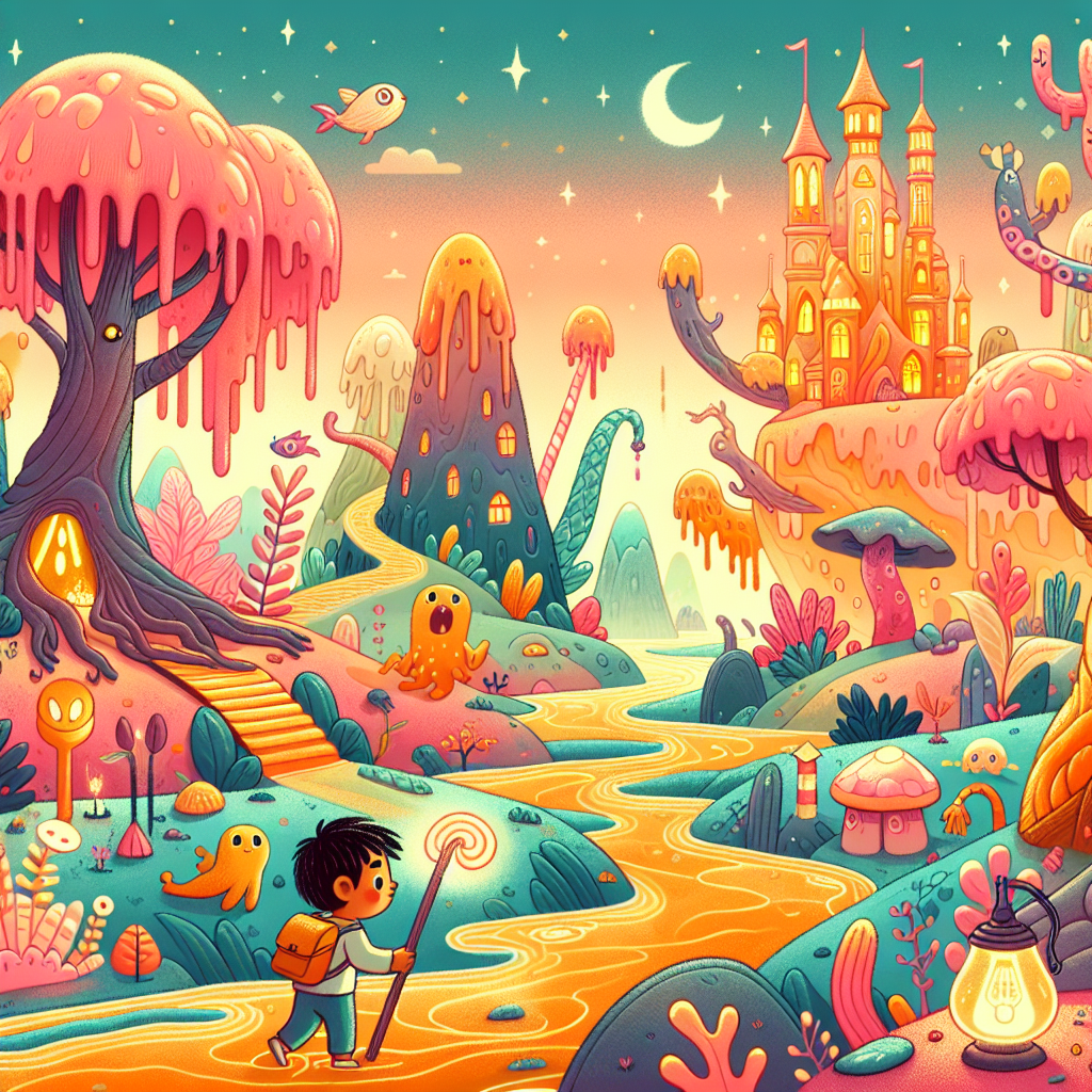 Leo decise di seguire la scia luminosa delle stelle e, chiudendo gli occhi, si ritrovò in un mondo surreale. Qui tutto era diverso: gli alberi erano azzurri, i fiori cantavano dolci melodie e i fiumi scorrevano al contrario. Leo era affascinato e si sentì subito accolto da questo mondo magico.