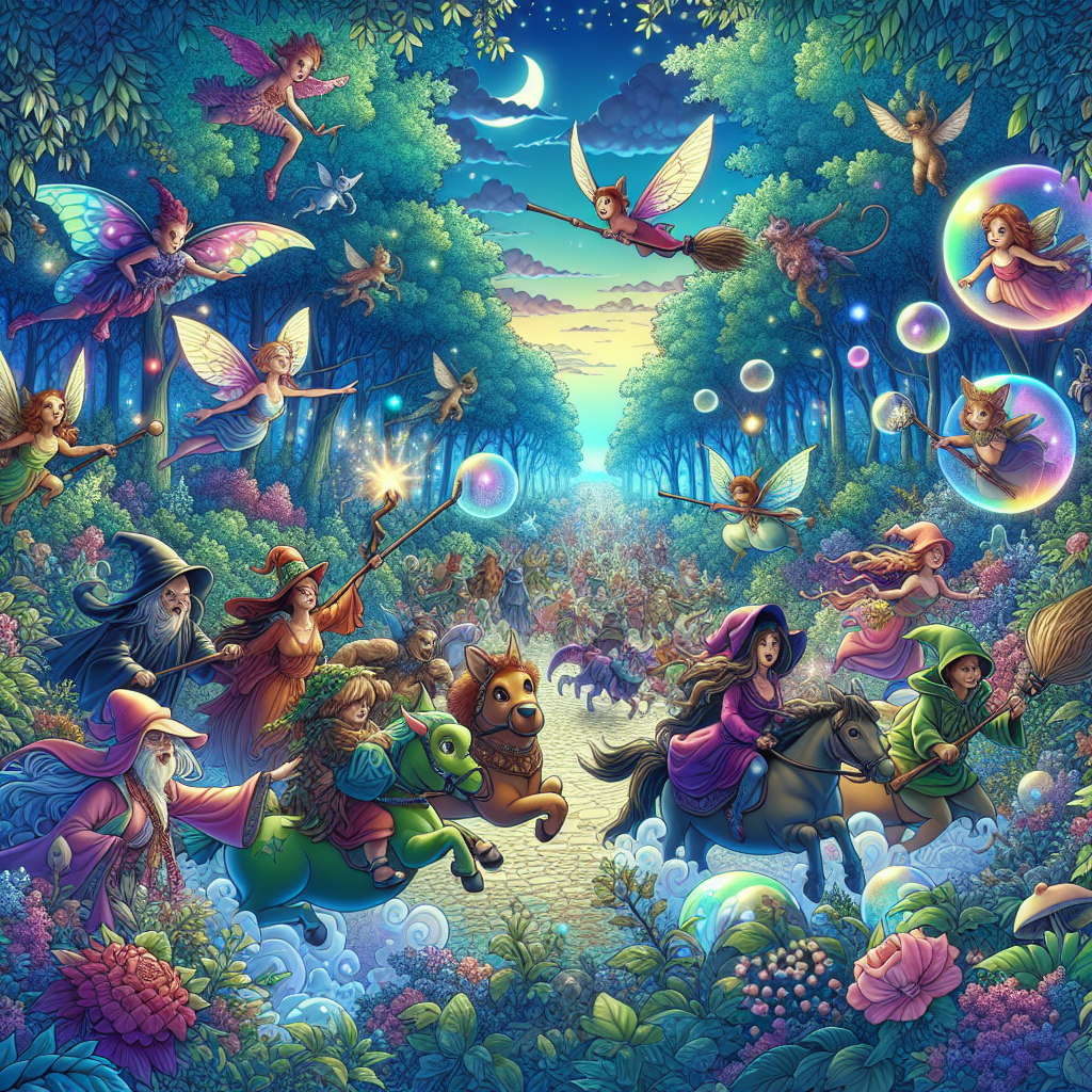C’era una volta, in un lontano regno nascosto tra le nuvole, un bosco incantato chiamato Verdalia, dove gli alberi sussurravano segreti e le pietre brillavano di luce propria. In questo meraviglioso luogo, ogni quattro anni si svolgeva la ‘Gara Magica’, un evento che vedeva la partecipazione di tutti gli abitanti del bosco incantato, dagli elfi ai folletti, dagli unicorni ai piccoli draghetti.