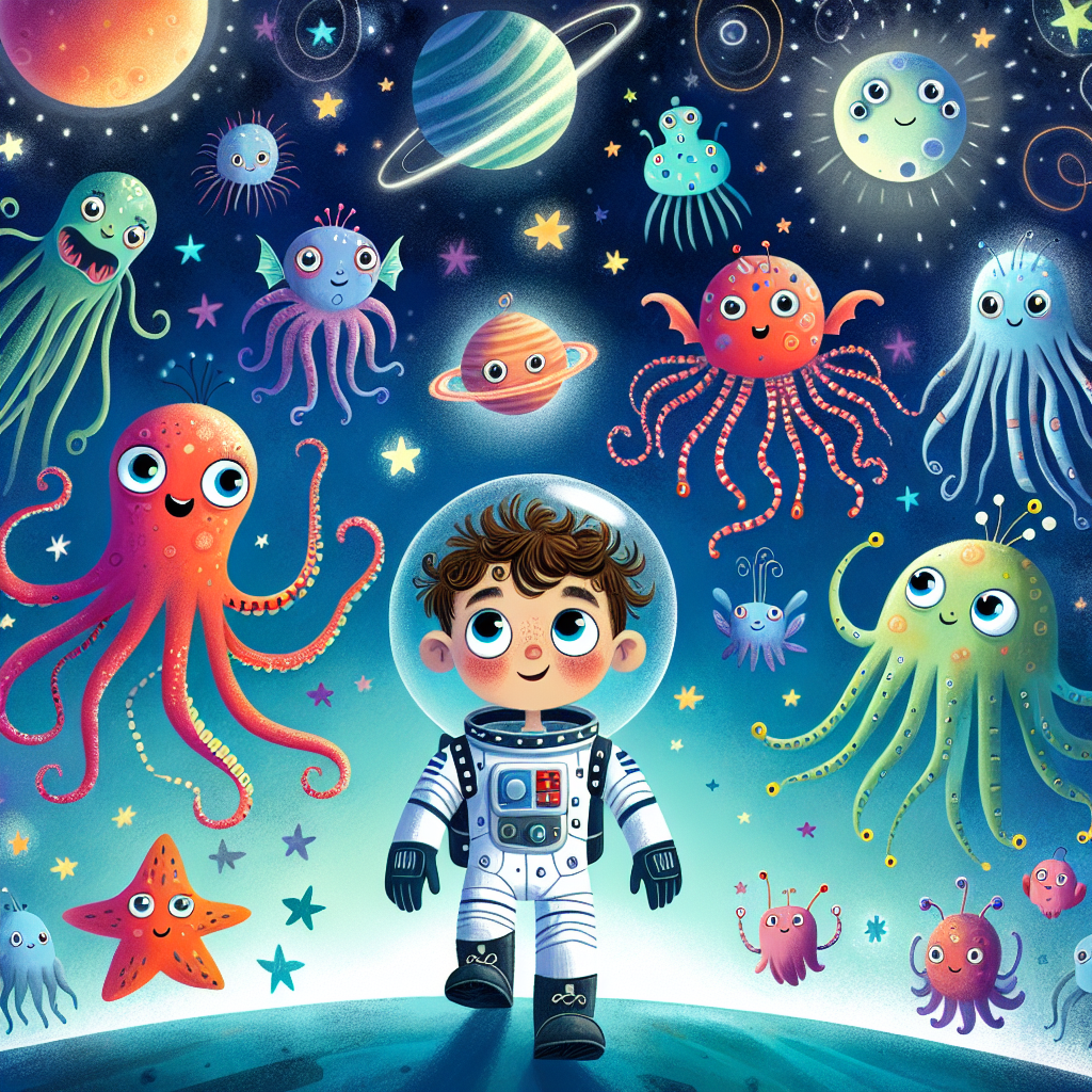 Il viaggio nello spazio fu incredibile. Guardando fuori dal finestrino, Leo vide la Terra diventare sempre più piccola, mentre stelle e pianeti splendevano luminosi. ‘Benvenuto nel nostro mondo,’ disse Zara, mentre atterravano su un pianeta colorato chiamato Zikon. Il pianeta aveva montagne che brillavano di mille colori e cieli ricchi di nuvole rosa e viola.